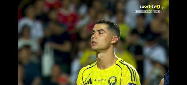 在利雅得胜利两年半,还没拿过正式比赛的冠军,只在2023年8月拿过不被国际足联承认的阿拉伯冠军杯冠军,C罗对冠军是异常渴望的。8月23日沙特超级杯决赛,C罗点球首开纪录,打进个人在利雅得胜利的第100球。可利雅得胜利两度领先两度被扳平,常规90分钟,利雅得胜利与吉达国民2比2战平。点球大战,吉达国民先罚。本队第一个出场,罚进点球后,C罗一度与队友在场边跪地祈祷。可在沙特的首个正式比赛冠军还是没来,点球大战,利雅得胜利3比5败北,只得眼看着吉达国民捧起沙超杯冠军。